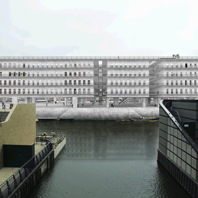 Facade towards Canary Wharf.