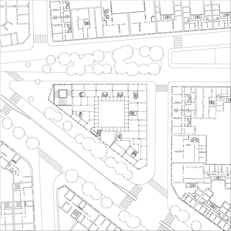 A new large courtyard becomes the core of the block turning it into a more intimate domestic space.