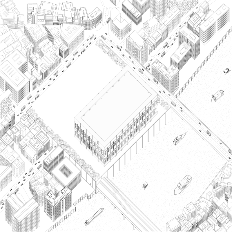 The room is a concrete building which revisits the classical language of architecture.