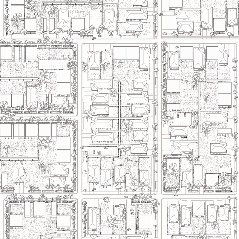 Second step of the strategy: punctual substitution of the macmansions with a new type aligned with the street.